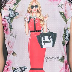 Kolekcija oblačil Princeska, je bila ustvarjena za ženske, ki želijo biti drugačne. Majčka je iz mehkega bombaža, s prav posebnim vzorcem. Piko na i, dajejo čipka in unikatno/ročno dodani kristalčki ter perlice. V majčki, ki je limited edition, bo blestela vsaka ženska. Za povečavo slikce pritisni krogec.